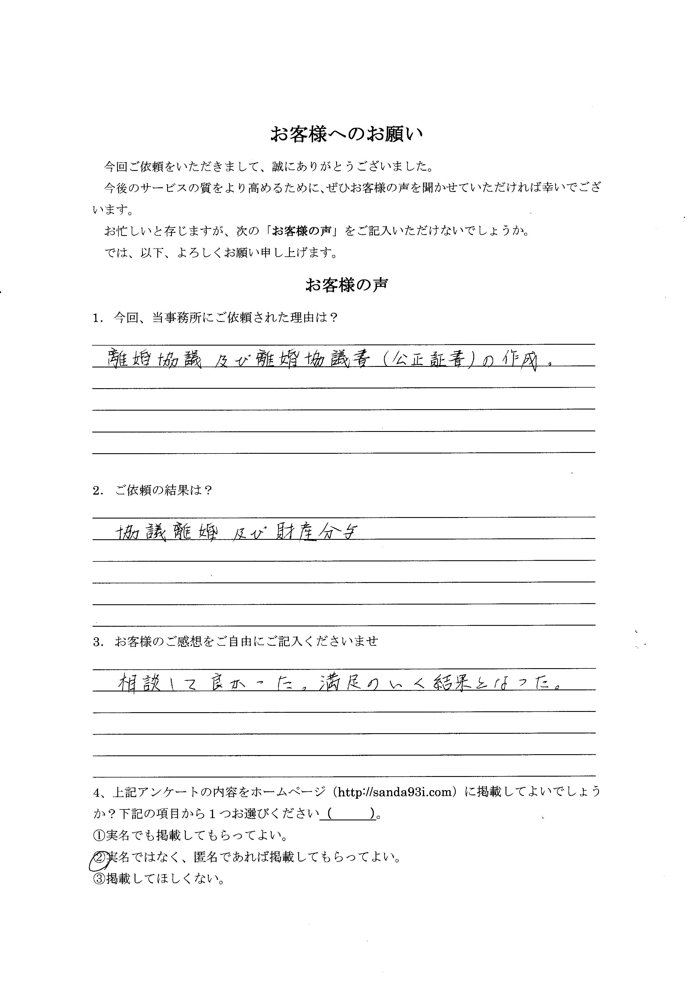 「条件がそろえば離婚する」というケースだったのですが、当該取り決めを丁寧に文書にしてくださいました。